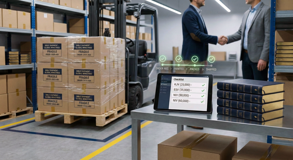 Outcome – Finished Bibles and Christian literature delivered to